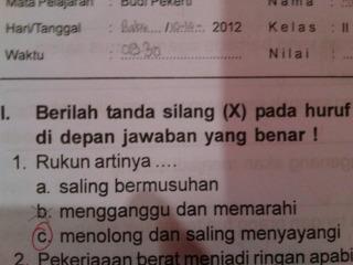sebuah anak sd di jawa timur menjawab dengan bahasa yang diajari dirumahnya...
